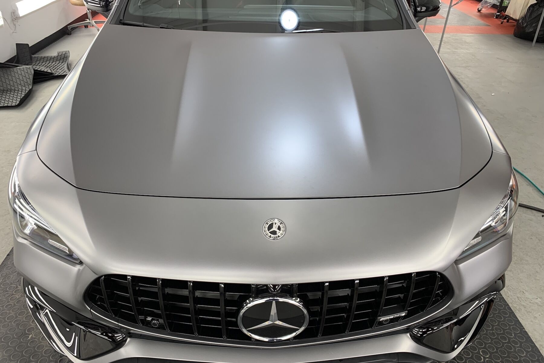 The result? Your car stays cleaner for longer and is easier to wash when it does get dirty. The ceramic coating also adds a deep, glossy finish that enhances the color and sharpness of your paint — or in the case of matte and satin finishes like the one above, it maintains the unique sheen without unwanted shine.