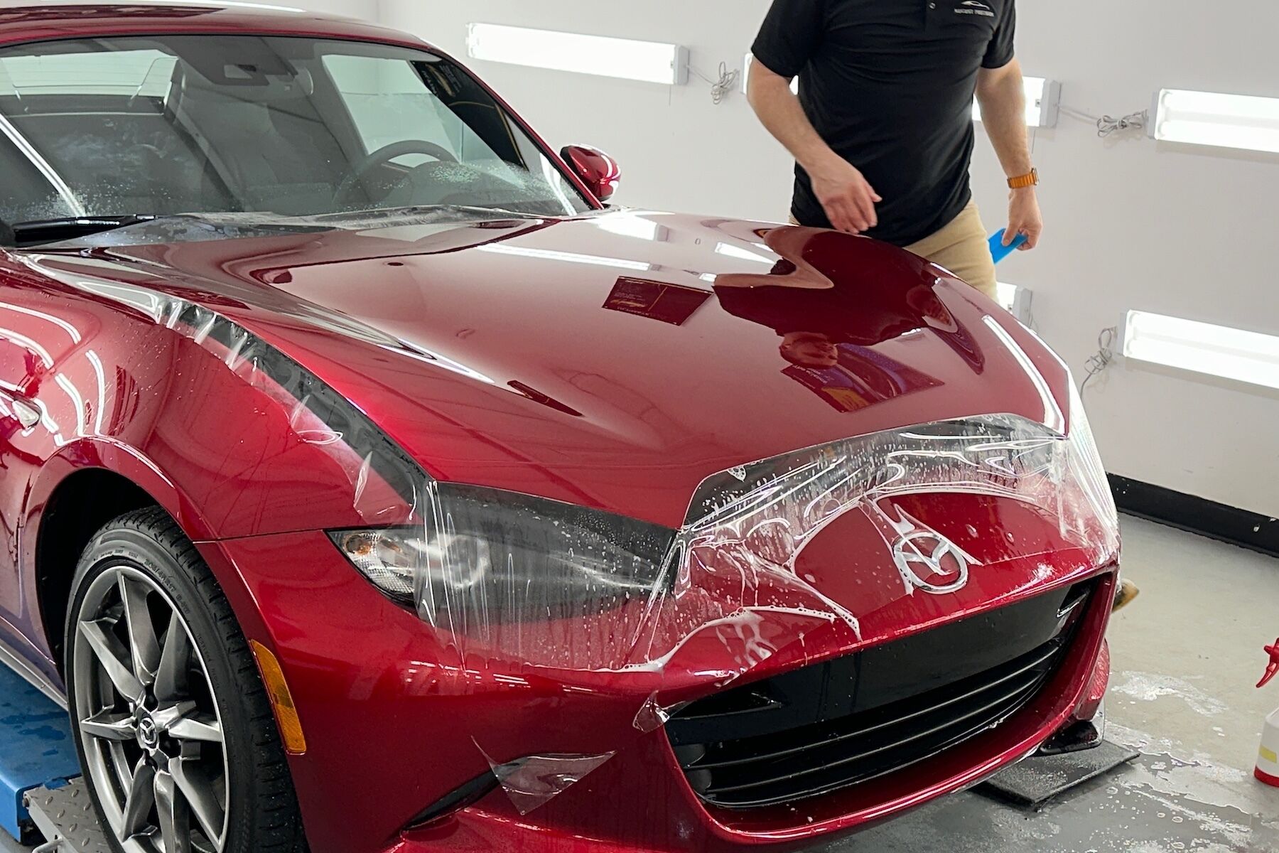 When it comes to preserving the beauty and value of your vehicle, nothing compares to professional paint protection film (PPF) installation. The image above showcases a precision PPF application in progress on a stunning red Mazda sports car—an investment worth protecting. At August Precision, we specialize in high-end auto detailing, ceramic coating, and professional PPF installation designed to keep your vehicle looking showroom-new for years.